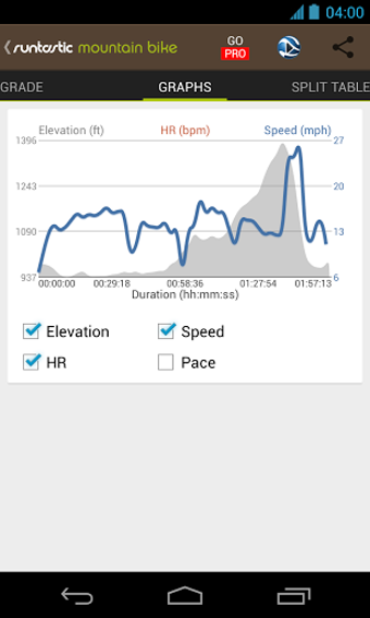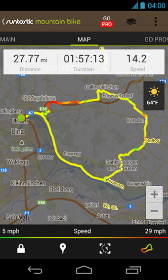 Ook tijdens het trappen heeft Runtastic Mountain Bike veel opties. Het houdt in real-time je snelheid, tijd en afstand bij. Ook volg je je voortgang tijdens het klimmen en houd je je ritme in de gaten. Extra handigheidjes zijn de toegang tot je muziekspeler en gesproken informatie.